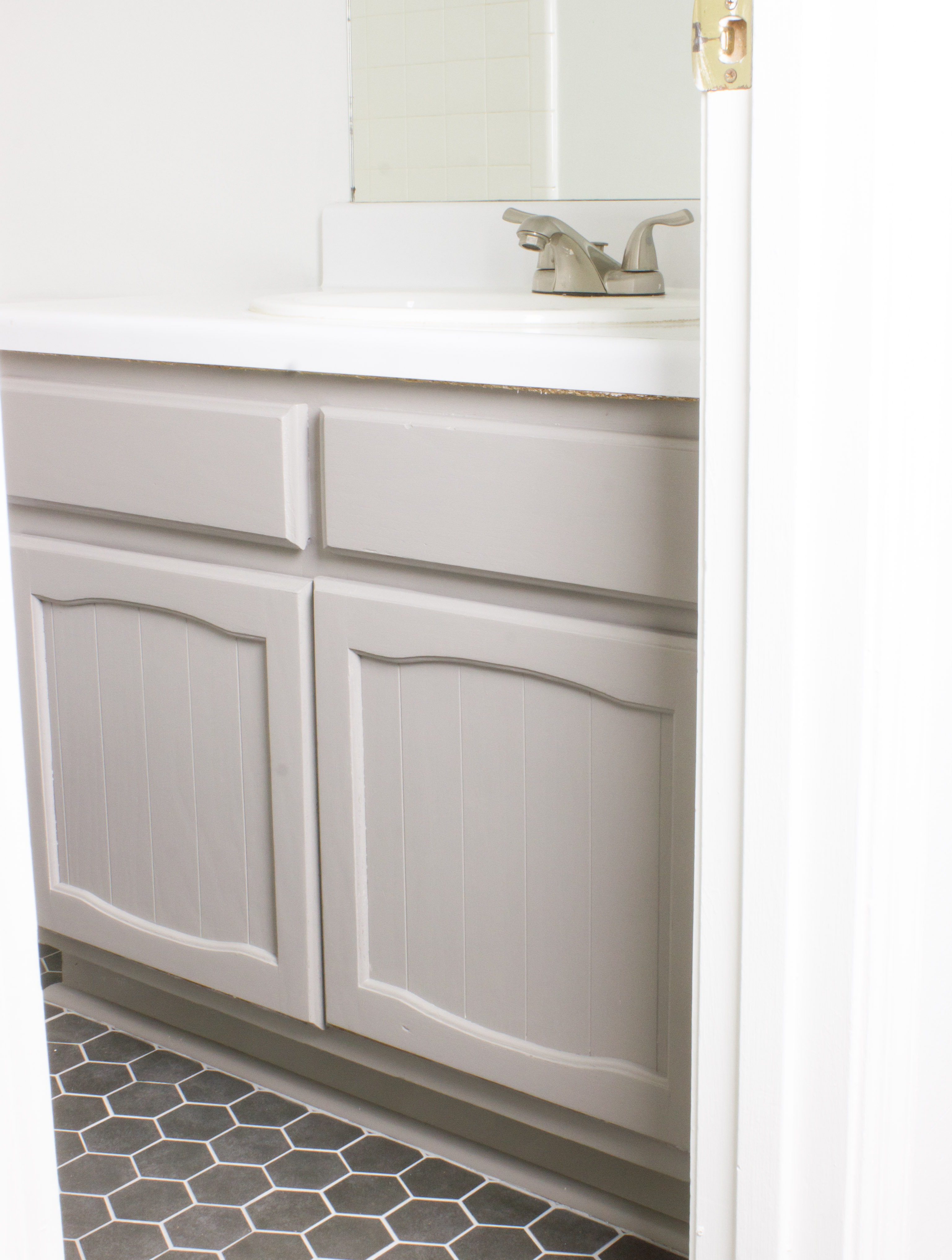 When we were looking for a countertop for our hall bathroom makeover, i knew i'd be painting the cabinets white so i wanted.